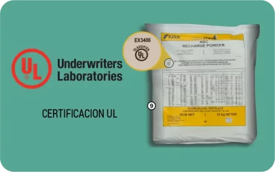 9.- Certificado por UL: Pyro–Chem 90% UL, esta certificado por UL (Underwriters’ Laboratories), en el expediente EX3406 como Agente Extintor para Recarga de Extintores (Dry chemical Extinguishing Agents for Recharging Fire Extinguishers). Pyro–Chem 90% UL, es el único agente extintor certificado por UL para recarga de extintores.