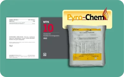 Exija Pyro–Chem ABC 90% UL para la recarga de extintores seleccionados conforme a nuestra NTP 350.043 y NFPA 10.